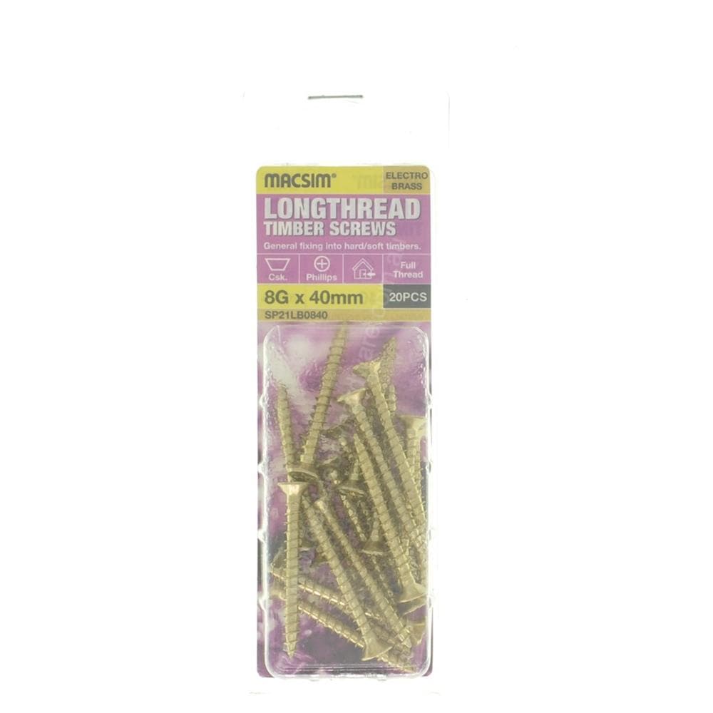 MACSIM 8Gx40mm Countersunk LONGTHREAD Timber Screw Zinc Plate SP21LB0840