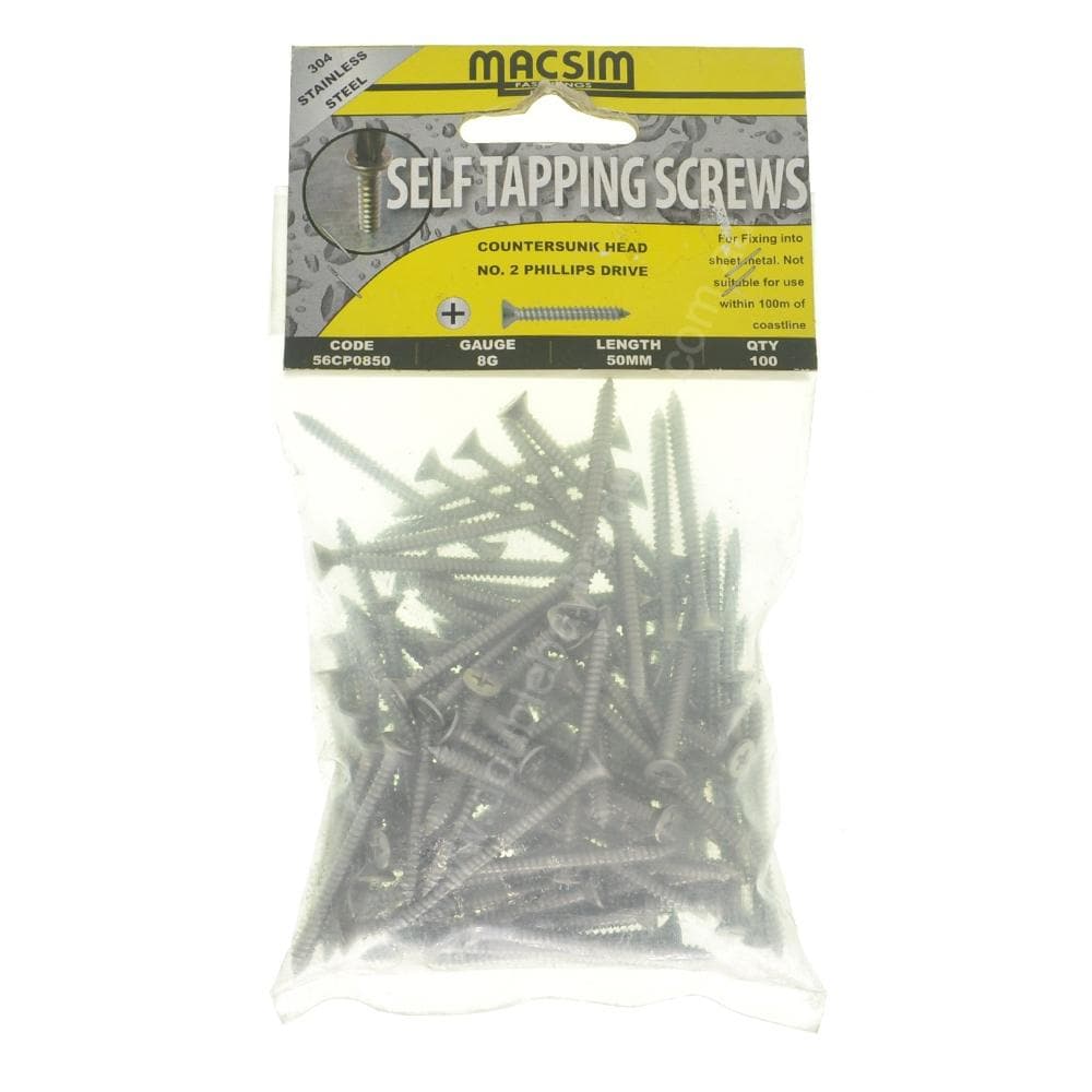 MACSIM 8Gx50mm Countersunk SELF TAPPING Screw Stainless Steel 56CP0850