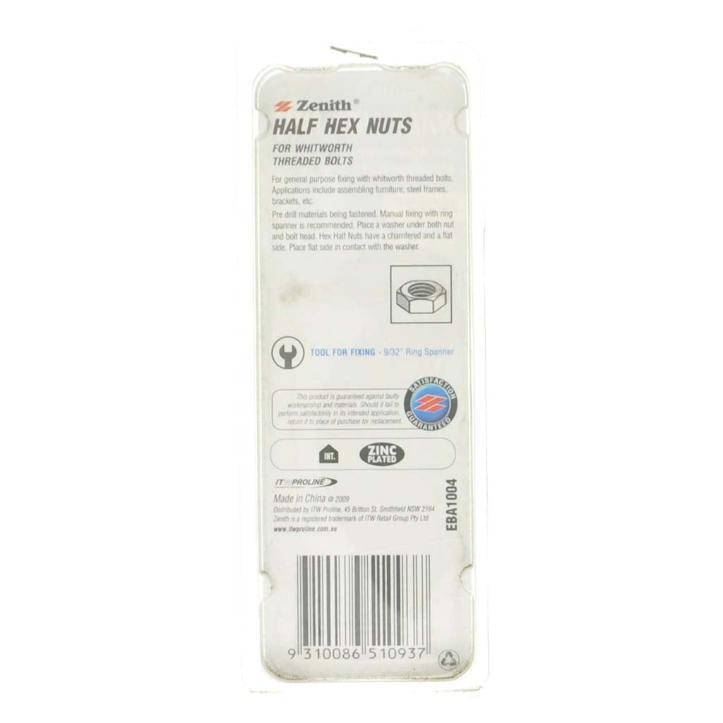 Zenith 5/32" Half Hex Nut Zinc 50Pcs EBA1004