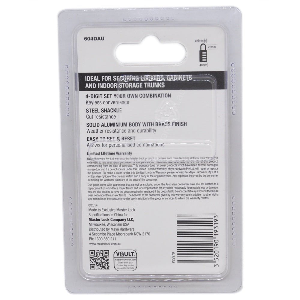 Master Lock Combination Lock Weather & Cut Resistance 604DAU