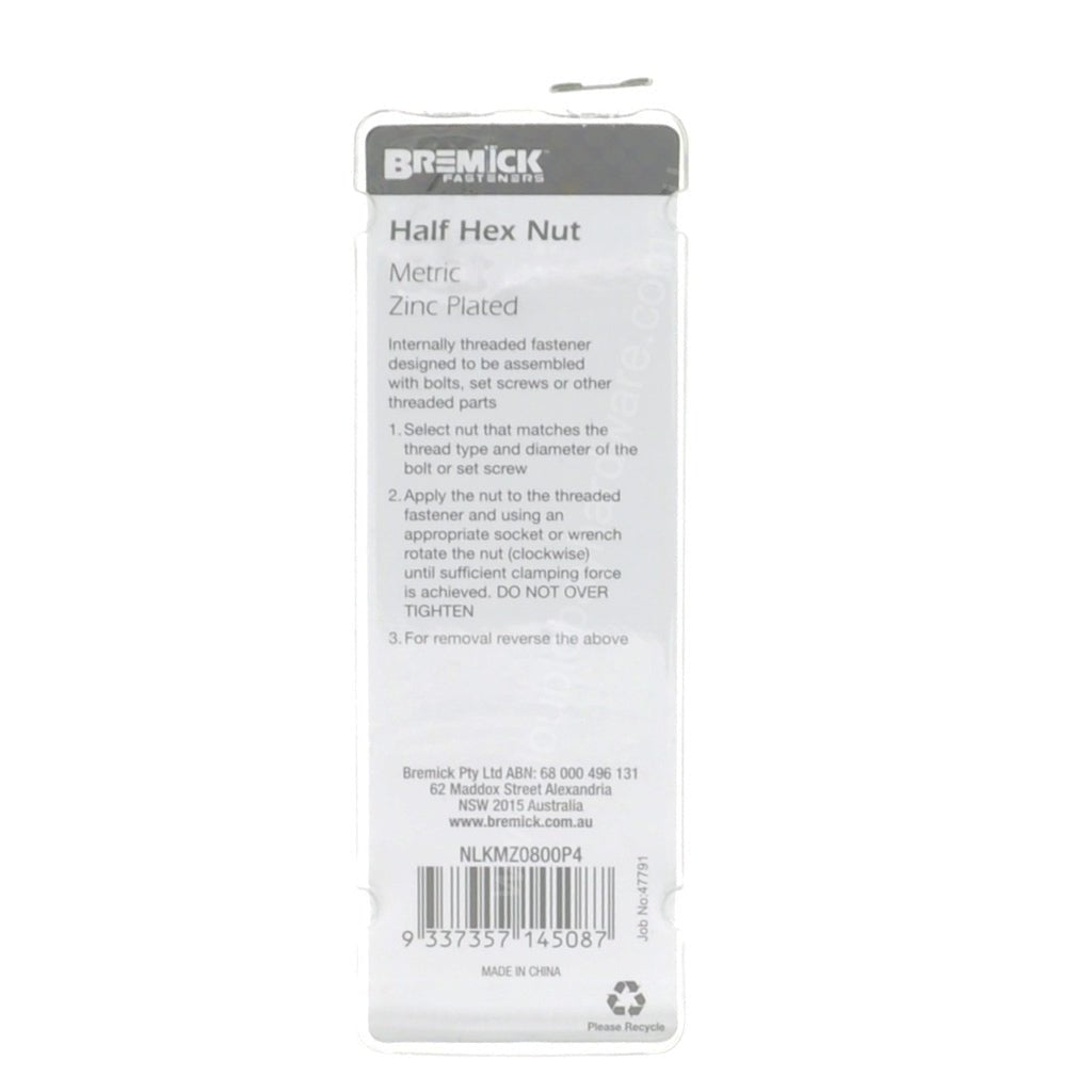 Bremick M8 Half Hex Nut Zinc 12Pcs NLKMZ0800P4