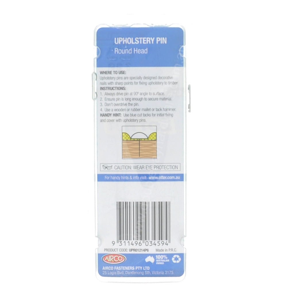 - Upholstery pins are specially designed decorative nails with sharp points for fixing upholstery to timber.