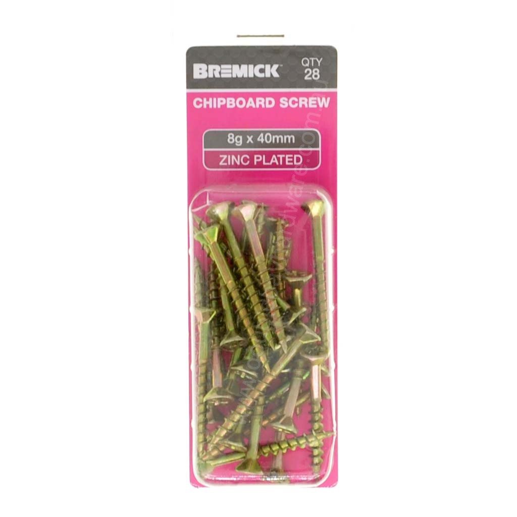 Bremick 8Gx40mm Countersunk Chipboard Screw Phillips Zinc Plated 28Pcs
