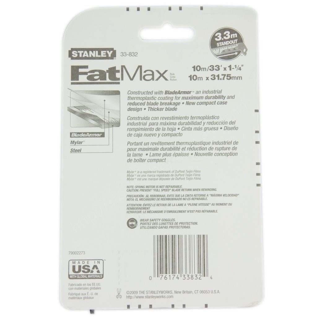 - The STANLEY® FATMAX® BladeArmor™ 10M/33' Tape Measure with 32mm blade width for clear and legible markings, is class II accurate providing a reassuring +/- 0.5mm error tolerance at 1m, suitable for the majority of professionals.