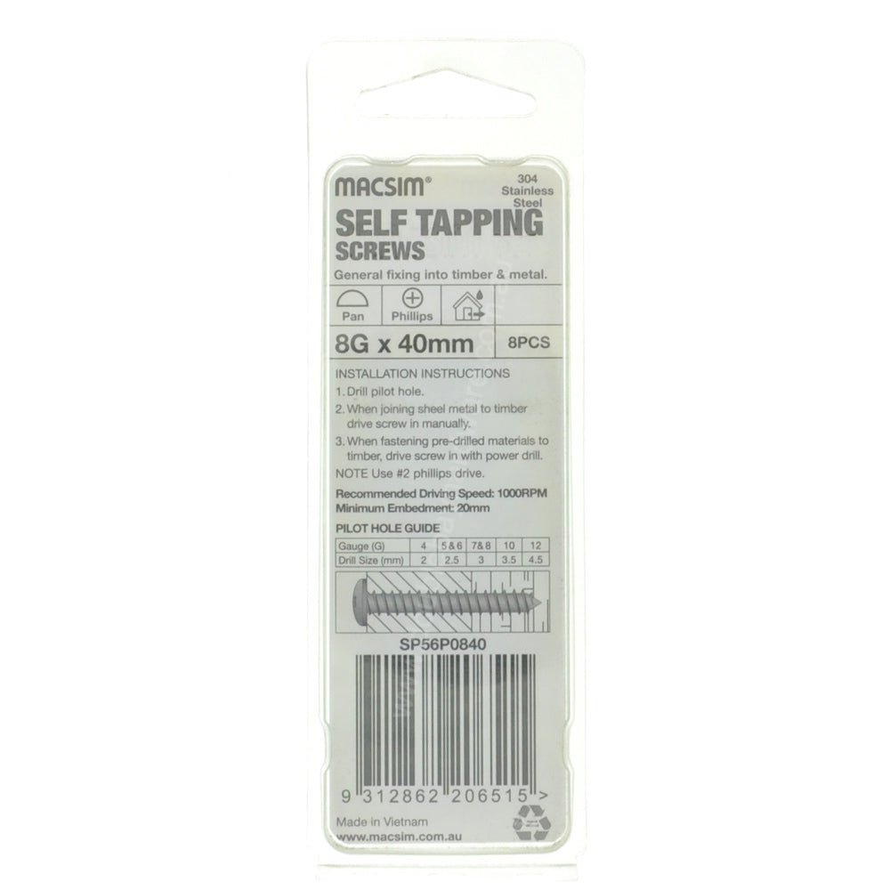 MACSIM 8Gx40mm PAN HEAD SELF TAPPING Screws Phillips Stainless Steel SP56P0840