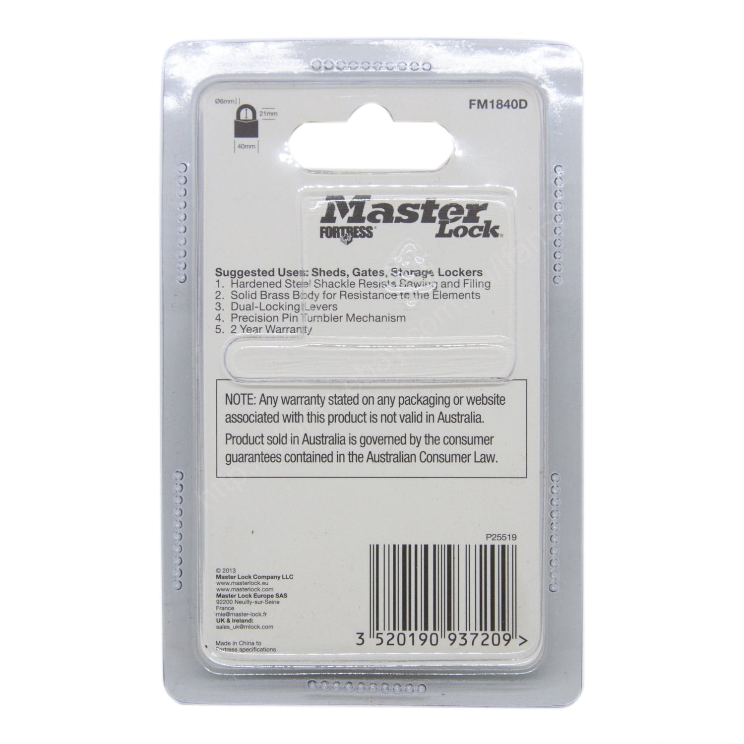 Master Lock Fortress 40mm Solid Brass Body Padlock FM1840D