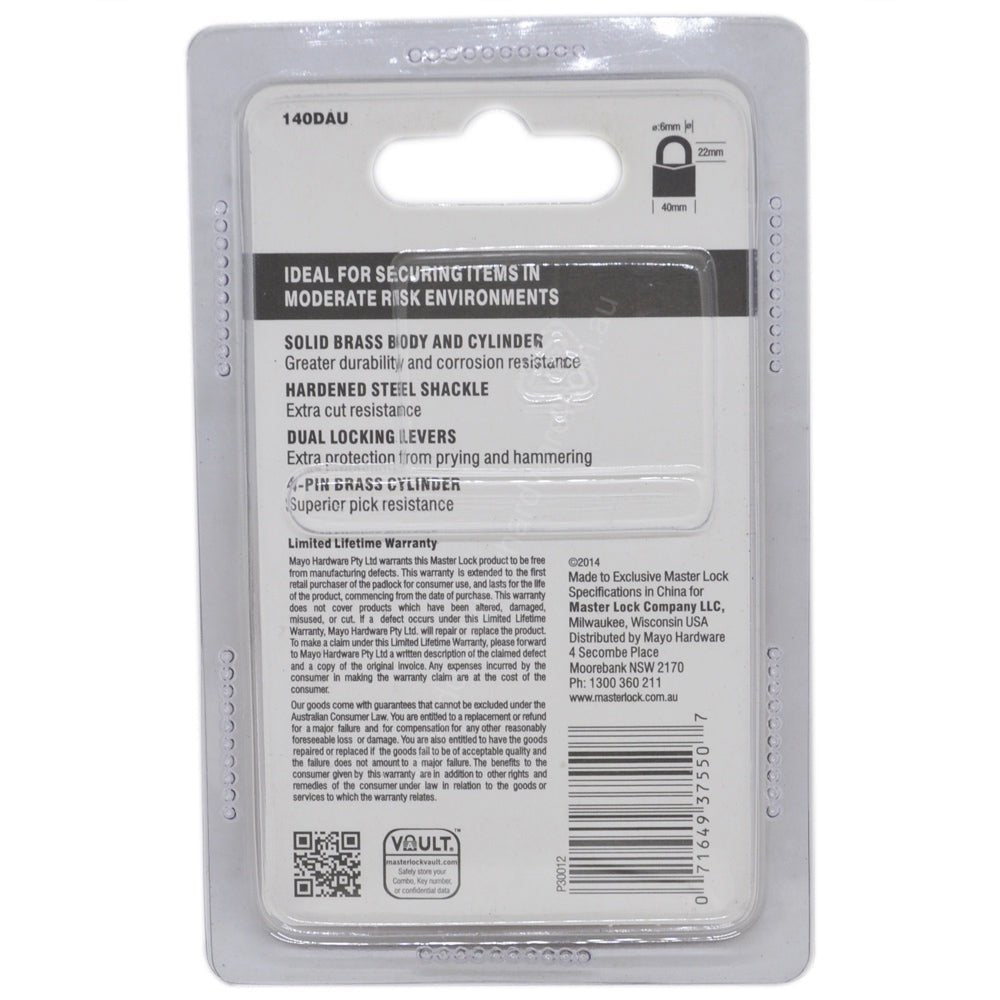 Master Lock Solid Brass Padlock 40mm 140DAU