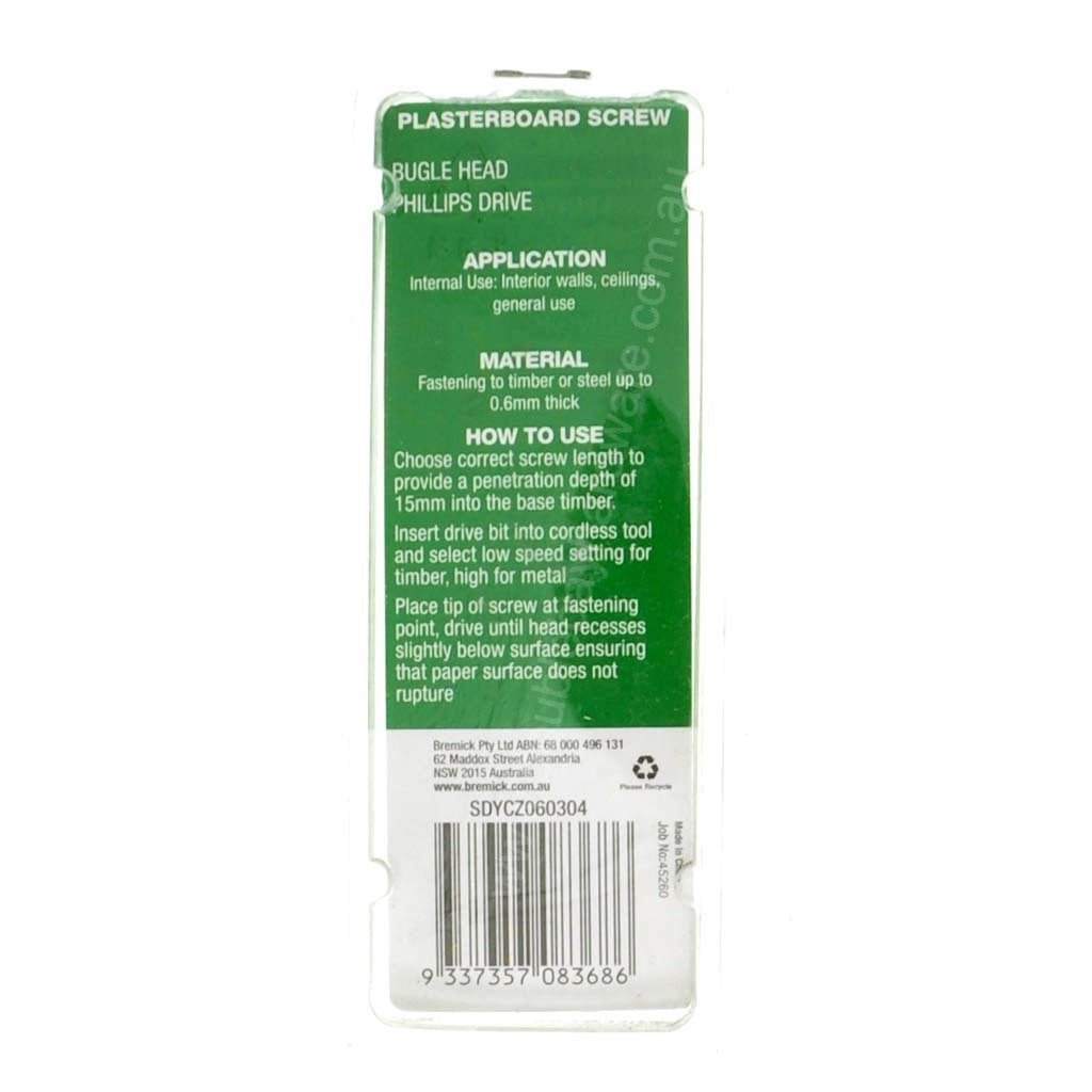 Bremick 6Gx30mm Bugle Plasterboard Screw Phillips Zinc Plated 40Pcs