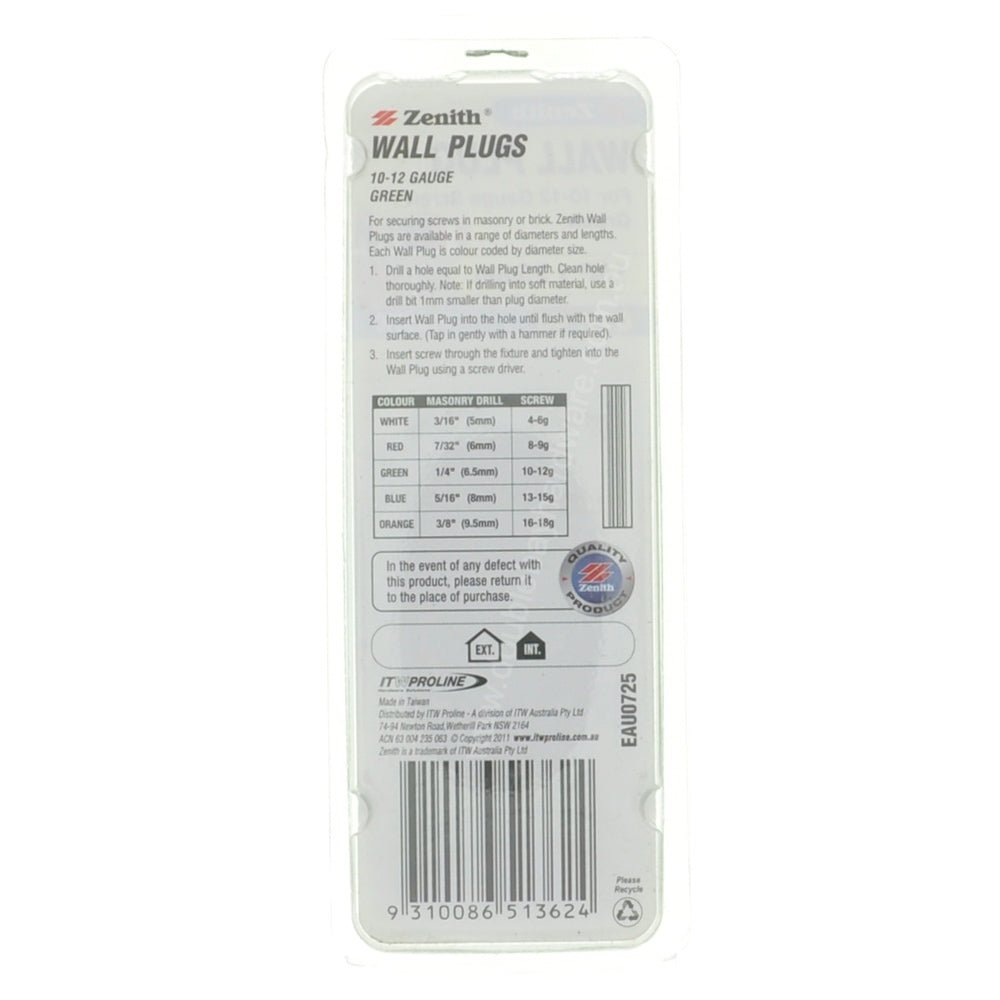 Zenith Wall Plug Green 1/4"x25mm For 10-12 Gauge Screw EAU0725