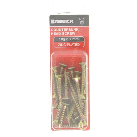 Regular price $9.90Unit price /UnavailableBremick 10Gx30mm Countersunk Screw Phillips Zinc Plated 25Pcs
