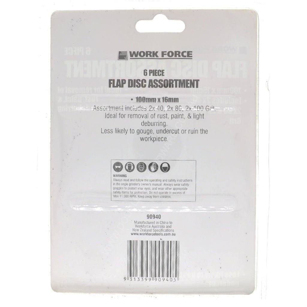 WORK FORCE Flap Disc Assortment 100mm 6Pcs 90940