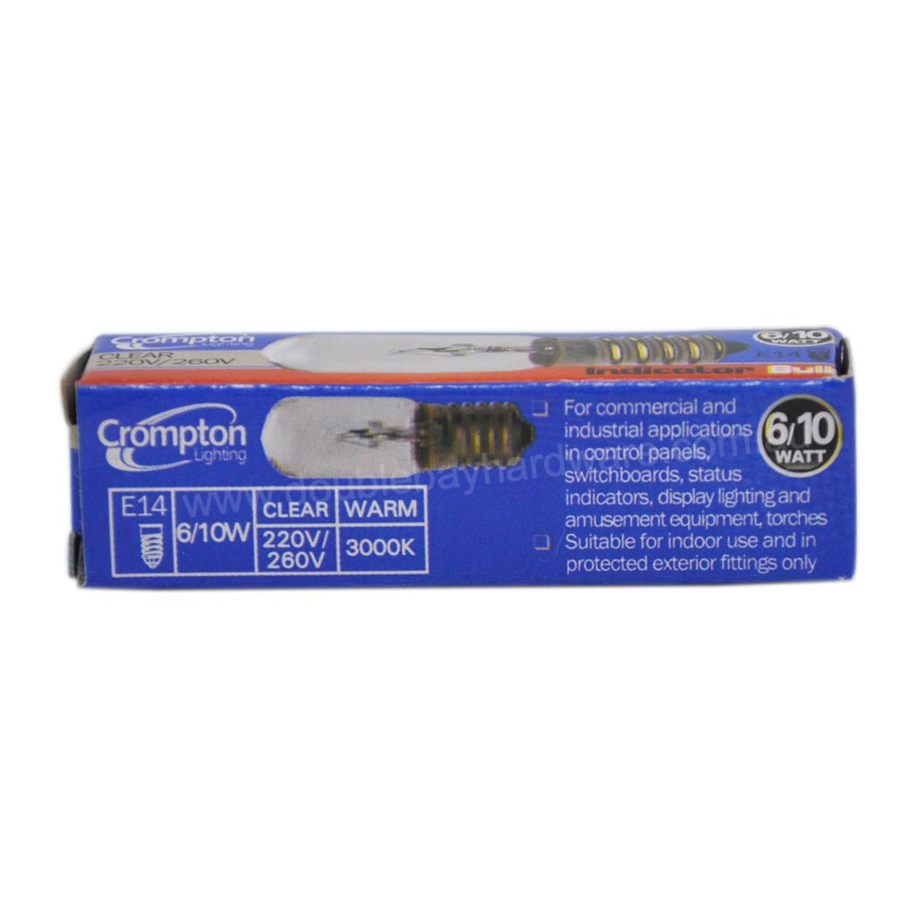 Crompton Incandescent Indicator Light Bulb E14 220V/260V 6/10W Clear 15216