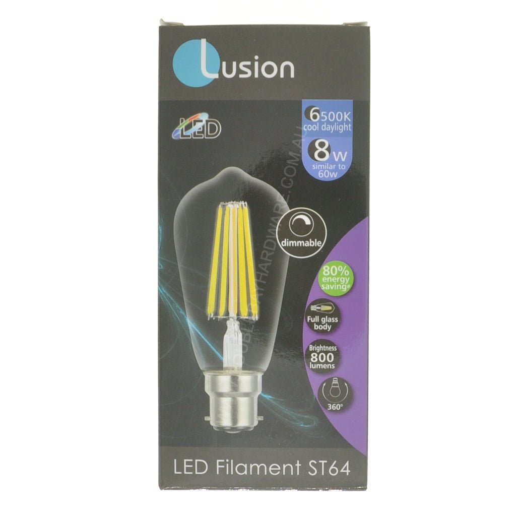 Lusion ST64 Filament LED Light Bulb B22 240V 8W C/DL 20978