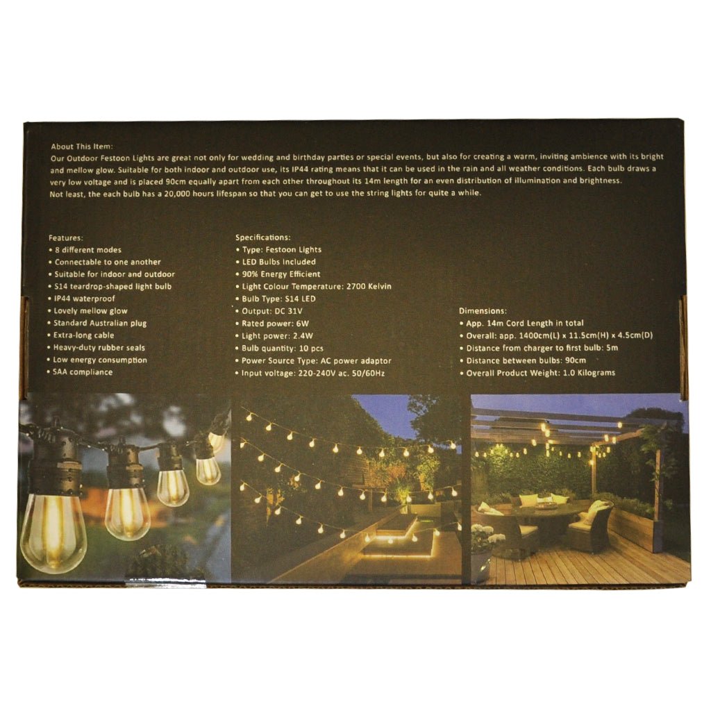 Sansai Outdoor Festoon Lights 10 Bulbs 14M W/W GL-EE110