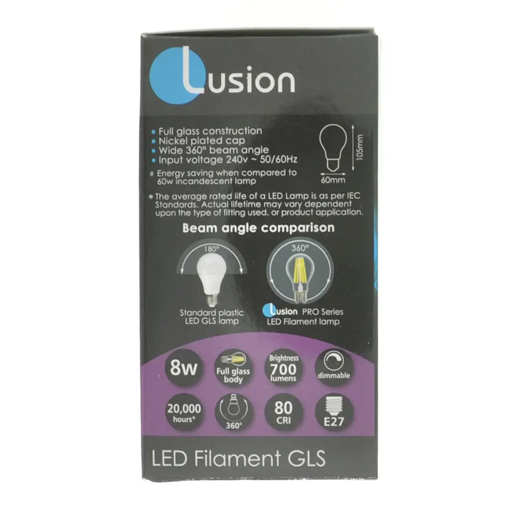Lusion GLS Filament LED Light Bulb E27 240V 8W C/DL 20510