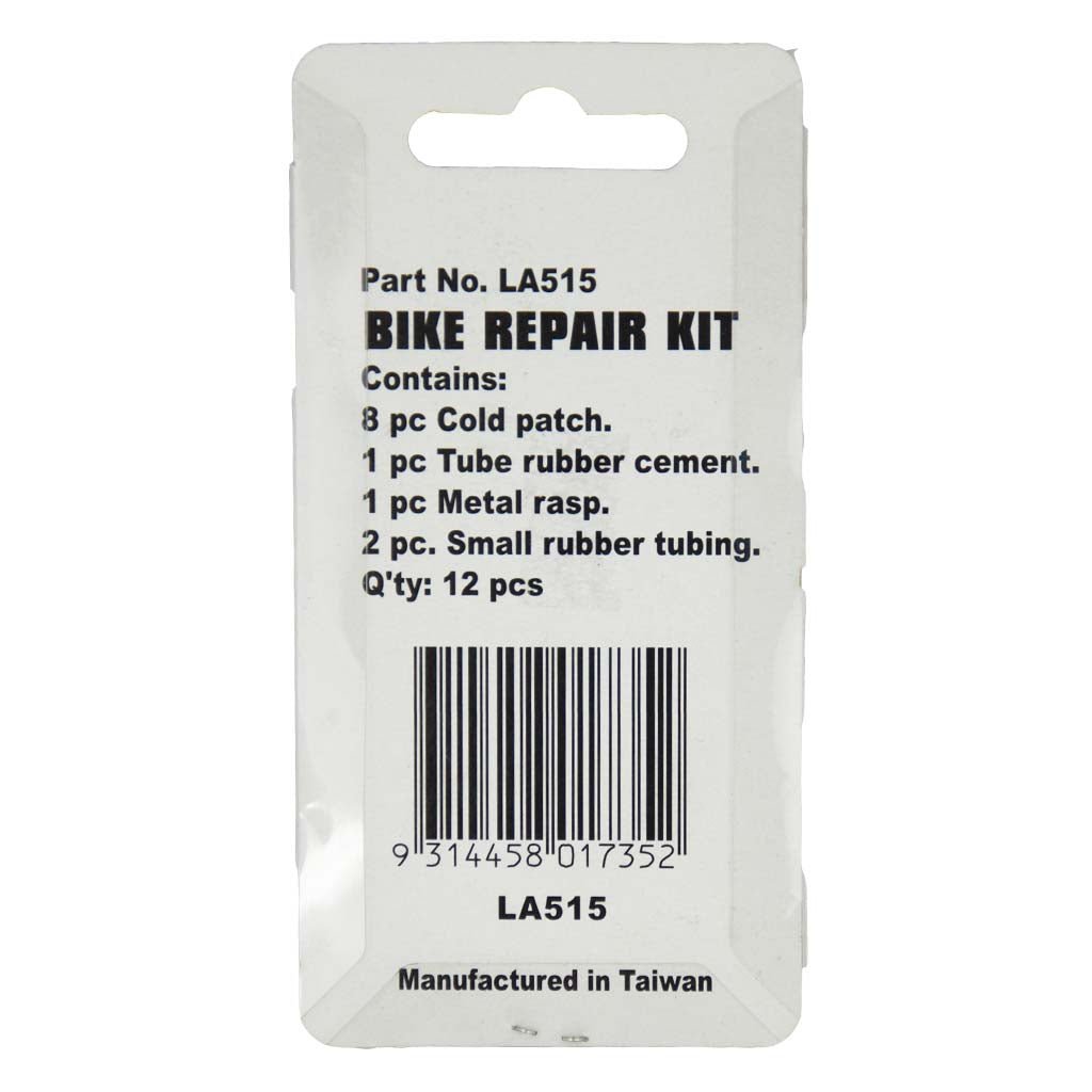 - Complete with assorted cold patches, glue, file and 2 x rubber tubing. Suitable for bikes and small tubes such as wheelbarrows, hand trucks etc.