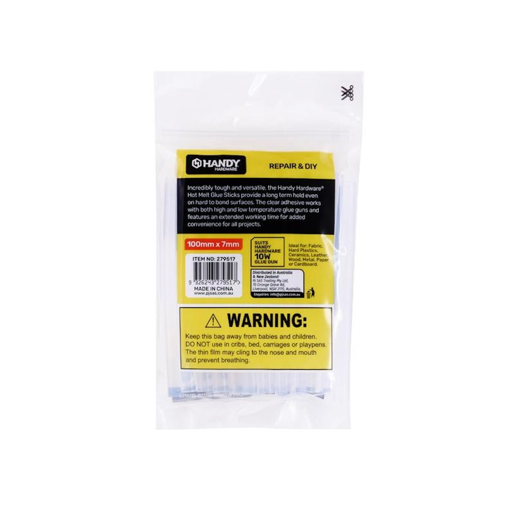 - Incredibly tough and versatile, the Handy Hardware Hot Melt Glue Sticks provide a long term hold even on hard to bond surfaces.