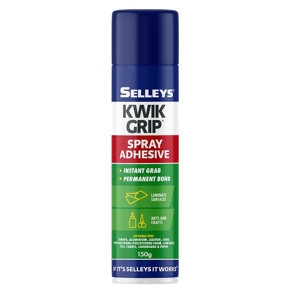 - Selleys Kwik Grip Spray is a solvent-based contact adhesive in an aerosol can.