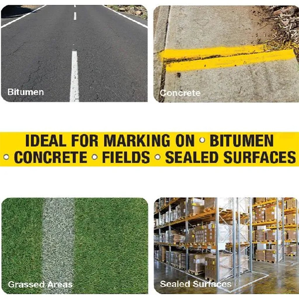 • 500g can produces approximately 80m of line (single coat) under standard conditions. Standard conditions are classified as a 60mm line width.