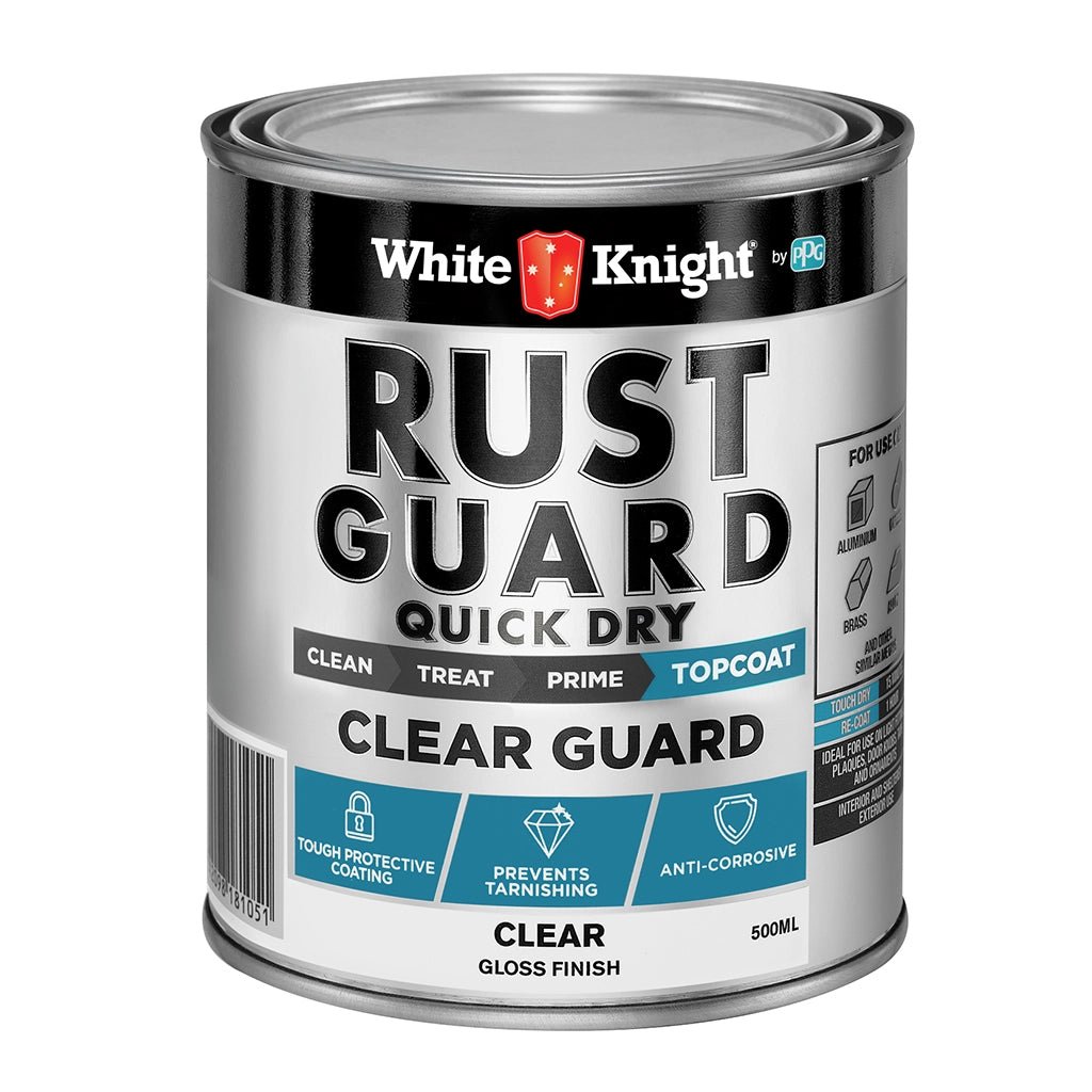 - White Knight Rust Guard Clear Guard is a tough protective clear coating that effectively seals aluminium, brass and copper surfaces to prevent corrosion and tarnishing.