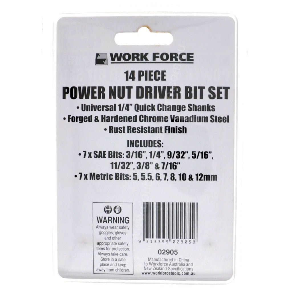 WORK FORCE Power Nut Driver Bit Set 14Pcs 02905