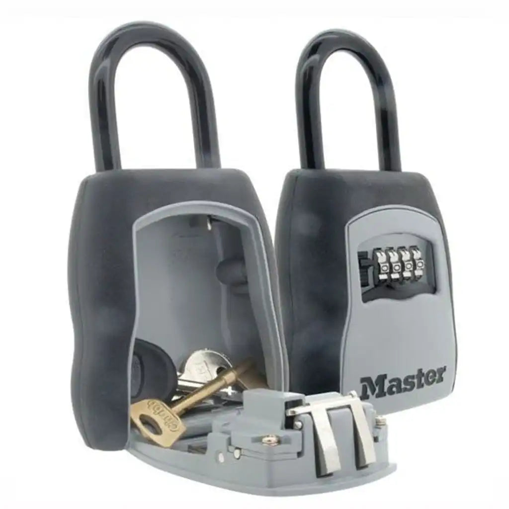 The Master Lock Portable Lock Box provides secure, flexible key storage with convenient 4-digit combination access. Featuring a durable 91mm (3-9/16in) wide metal body, this portable lock box offers reliable protection for up to 5 keys with the convenience of removable over-the-knob installation. Perfect for rental properties, real estate agents, Airbnb hosts, service providers, and temporary access needs, this lock box can be easily moved between locations or removed when not needed.
