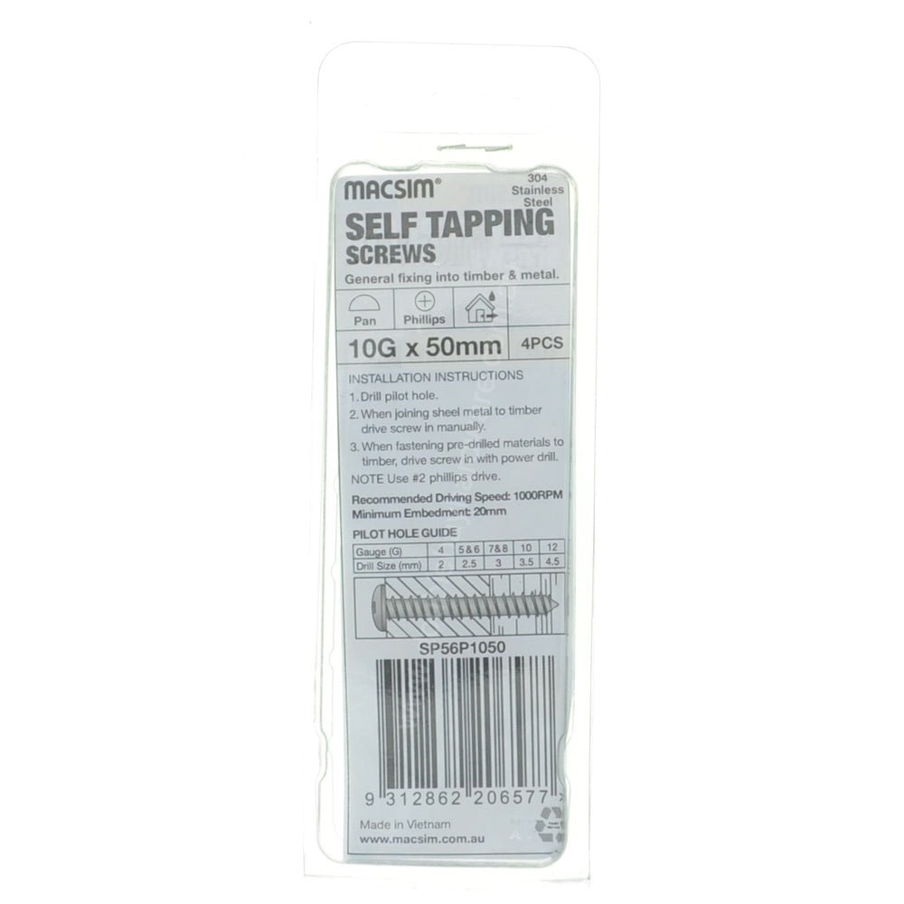 MACSIM 10Gx50mm PAN HEAD SELF TAPPING Screws Phillips Stainless Steel SP56P1050