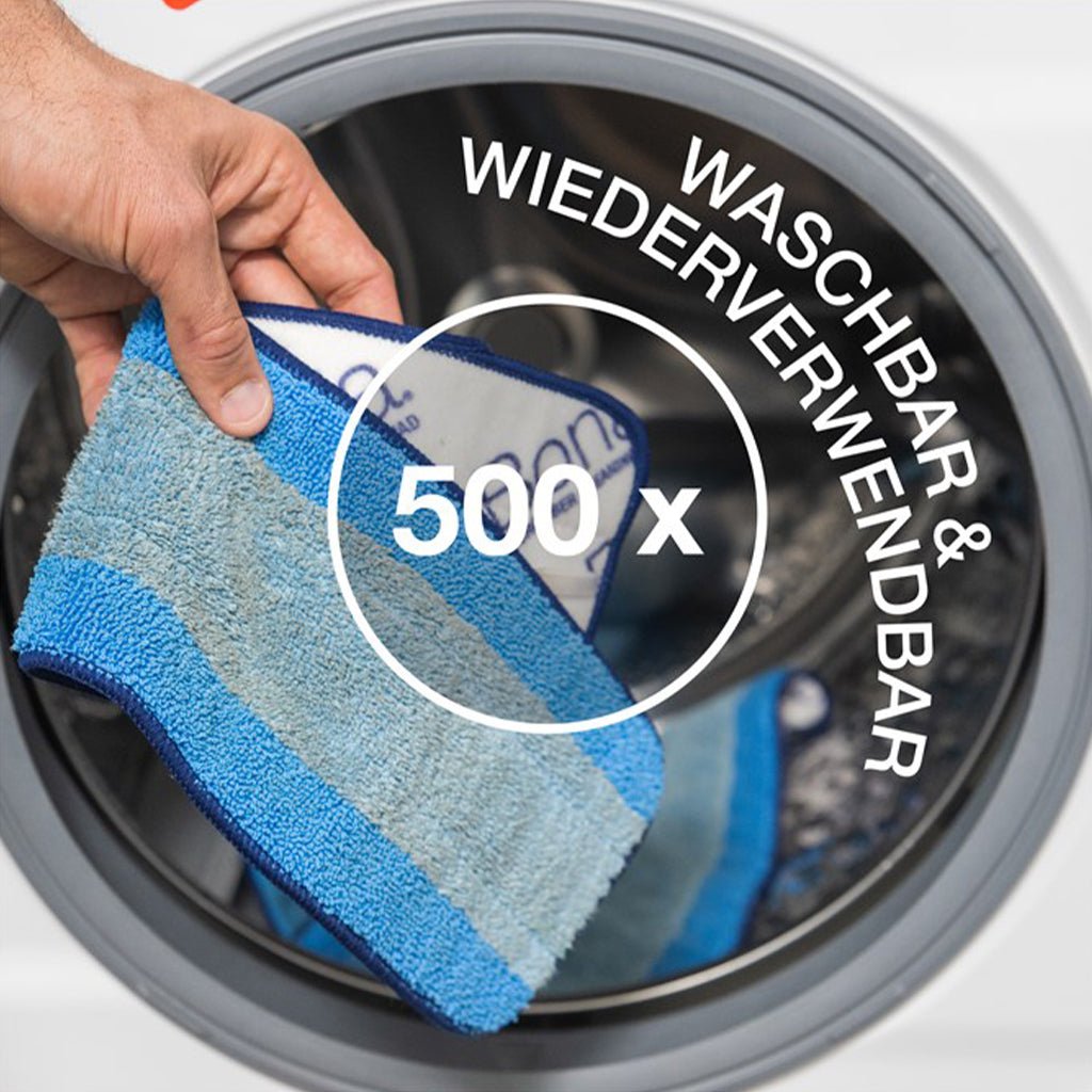 - Made with over 90% recycled content, the microfibre cleaning pad can be washed and reused over 500 times.