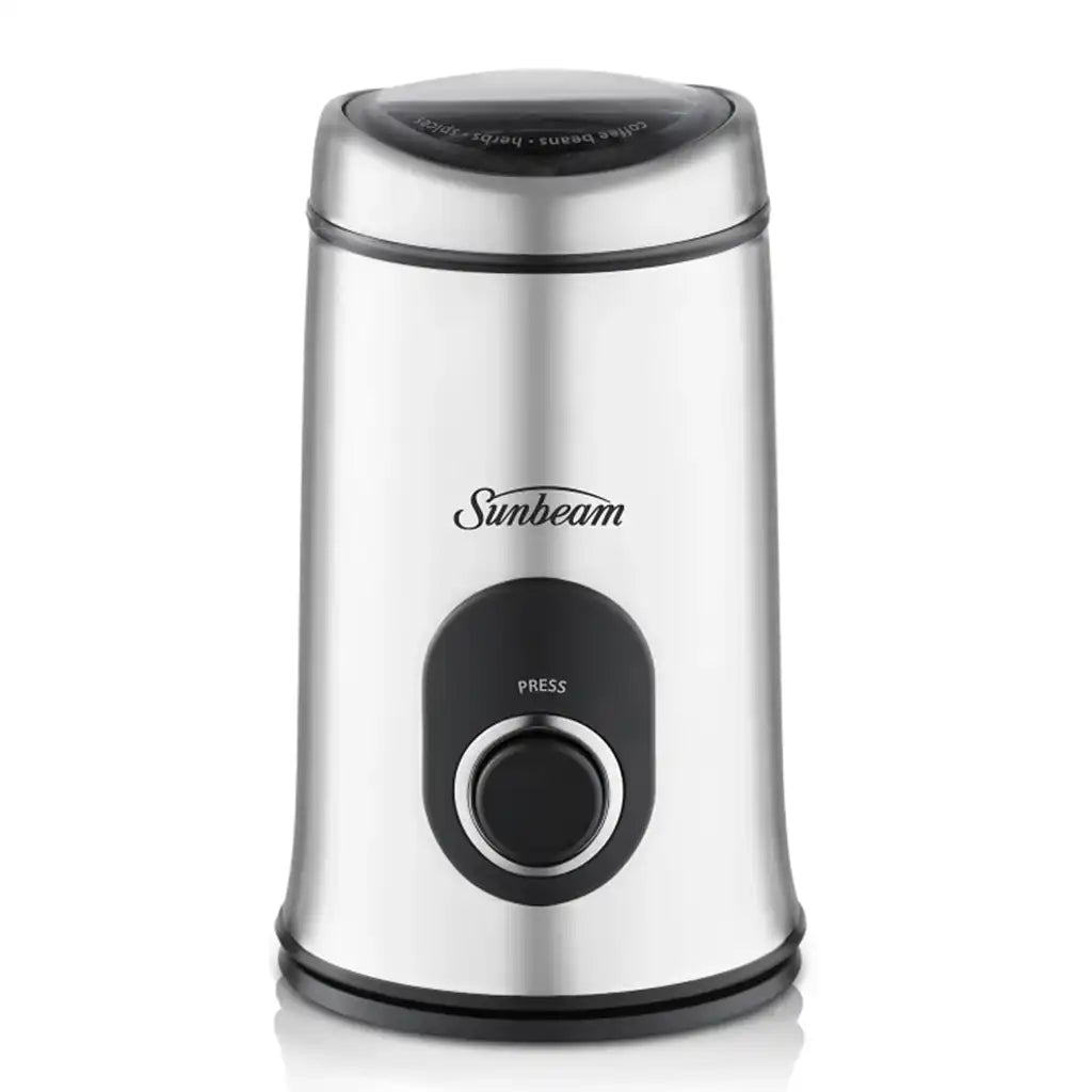 The Sunbeam MultiGrinder™ II EM0405 is a compact, one-touch grinder that makes light work of coffee beans, herbs, and spices. Its stainless steel wing blade system grinds ingredients to a fine powder in seconds, delivering fresh, flavourful results with minimal effort.